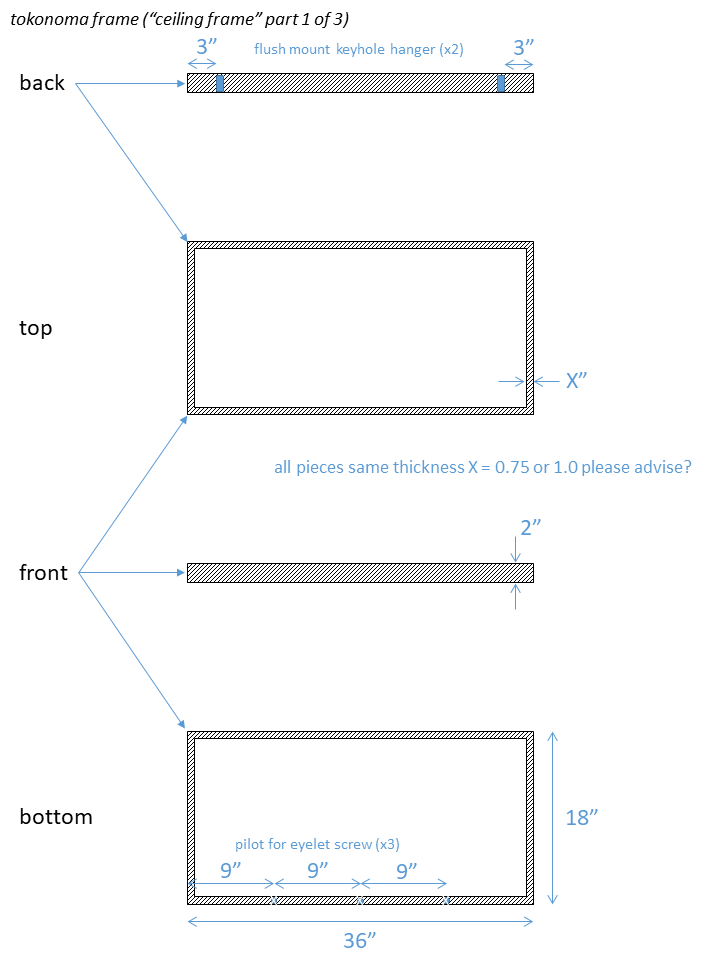Earlier this week I was fortunate to be able to work with Isaac Fisher, proprietor of Pachyderm Furniture in Fort Bragg, CA to build some wood pieces for my tokonoma installation concept. Here are the technical drawings I prepared and discussed with Isaac in advance: