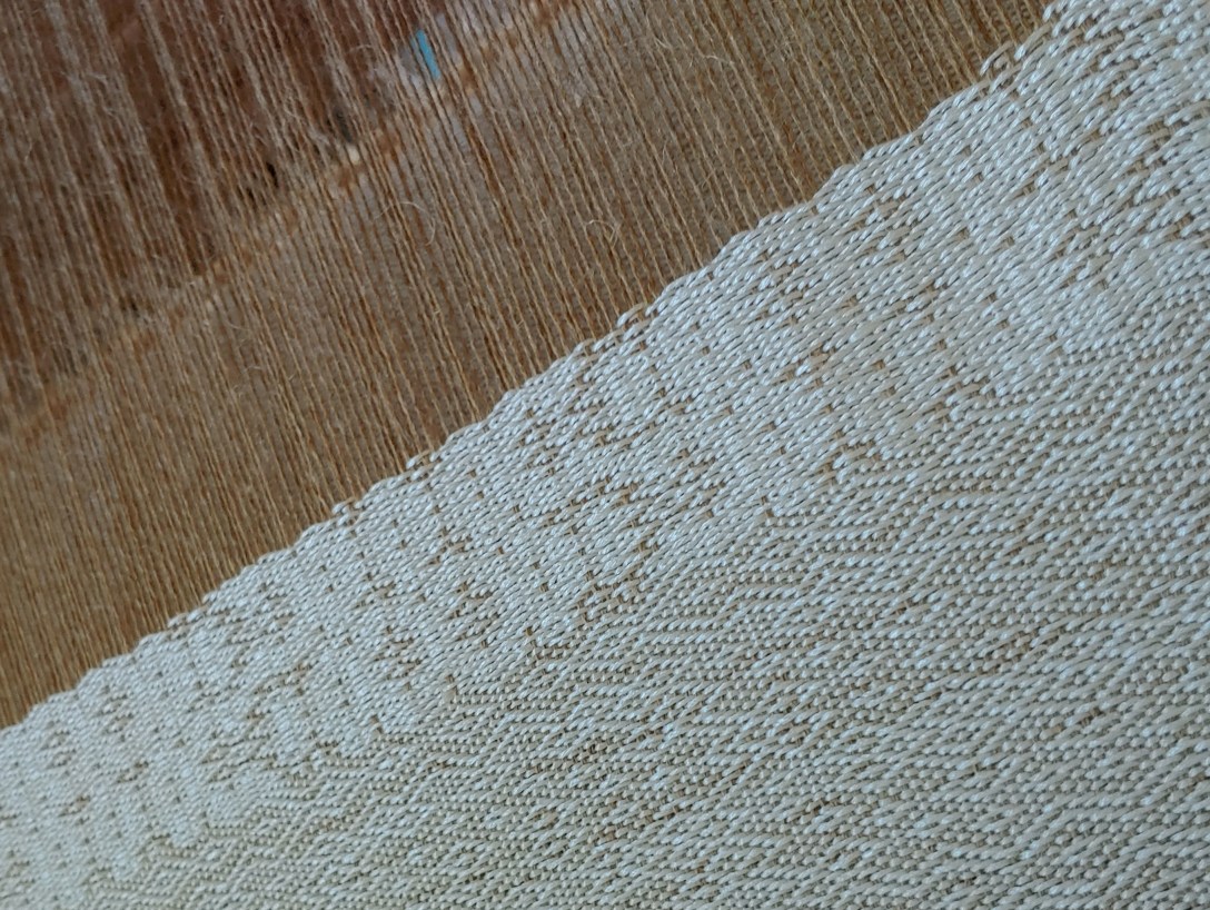 Last weekend I decided to switch up the loom configuration to weave a different pattern. There's still a lot of warp left so I didn't touch anything about the threading, but I had picked this particular threading because it supported a pretty diverse range of patterns with different tie-ups. The re-tie to a new treadling… Continue reading Re-tie